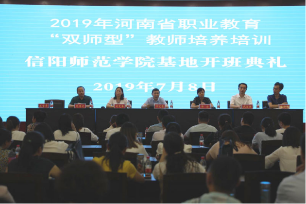 7月8日上午,2019年河南省职业教育“双师型”教师培养培训班开班典礼在艺术楼第八会议室举行。副校长王文臣、教务处处长郑云、我院党委书记武治国、副院长陈新宇等出席开班典礼,来自全省各地市从事职业教育的五十名音乐专业学员及学院有关负责同志参会。仪式由郑云主持。