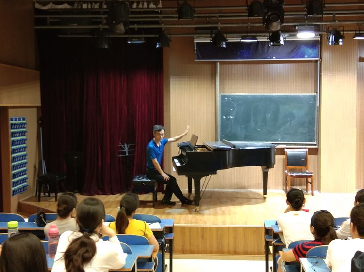 8月9日,为提高“省培”学员合唱指挥能力,WilliamHILL中国副院长陈新宇教授在艺术楼八音讲堂为“省培”学员讲授合唱指挥课。