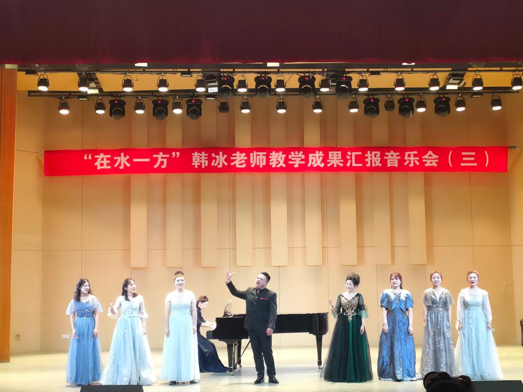 3月23日,我院声乐教研室主任韩冰老师在艺术楼音乐厅举办中国艺术歌曲“在水一方”女声声乐专场,我院副院长陈新宇、任远,党委副书记郭振与三百余名师生一同欣赏了音乐会。
