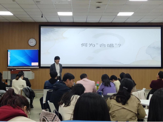 2023年3月25日,应我院之邀,西北民族大学窦铁民老师为2022 年“义务教育师资薄弱环节改善暨中小学教师素质提升工程”省级骨干教师培育项目小学音乐班学员讲授合唱基础训练,我院部分师生旁听学习。