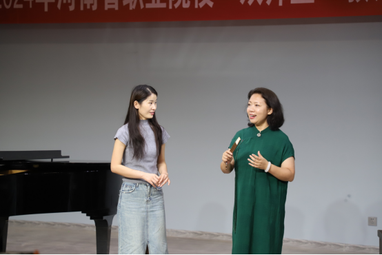 2024年7月17日,应我院之邀,河南大学音乐学院声乐歌剧系主任黄慧慧教授为2024河南省“双师型”教师培养培训音乐表演班学员讲授《歌唱训练中的规范与特色》这一专题课程,同时对九名学员进行一对一指导。
