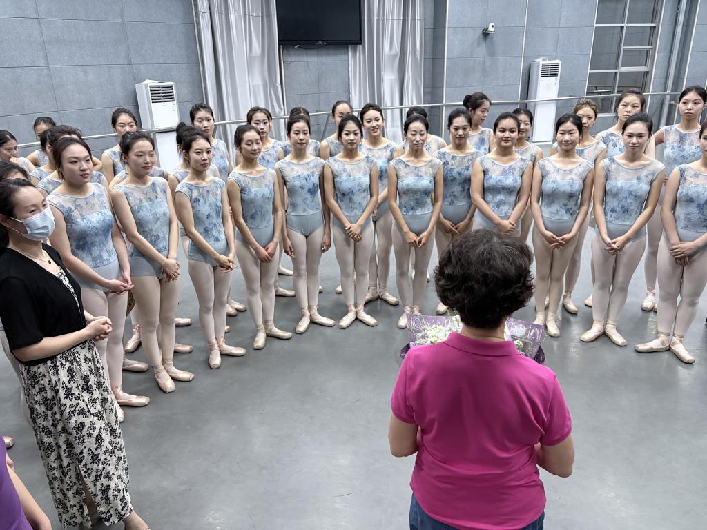 本次活动的核心在于为学院芭蕾专场《翎羽溯光》提供高水平专业指导。方锡玲教授以其深厚的艺术造诣和丰富的舞台经验,对专场节目的整体构思、演员的技术细节及艺术表现力进行了细致指导。她亲自示范关键动作,针对芭蕾的规范性与情感表达深度给予精准点拨。尤其在对《白毛女·大红枣儿甜又香》中融合革命叙事与现代芭蕾语汇的重要舞段进行指导时,她强调了肢体语言的爆发力与信念感的内在统一,有效提升了节目的艺术感染力与思想深度,师生深受启发。