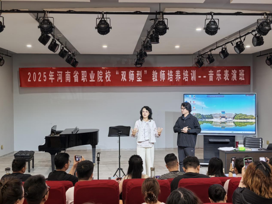 2025年7月13日,应我院之邀,武汉音乐学院余惠承教授为2025河南省“双师型”教师培养培训音乐表演班学员讲授《诗乐雅韵——中国古诗词艺术歌曲演唱研究》这一专题课程,同时对八名学员进行一对一指导。