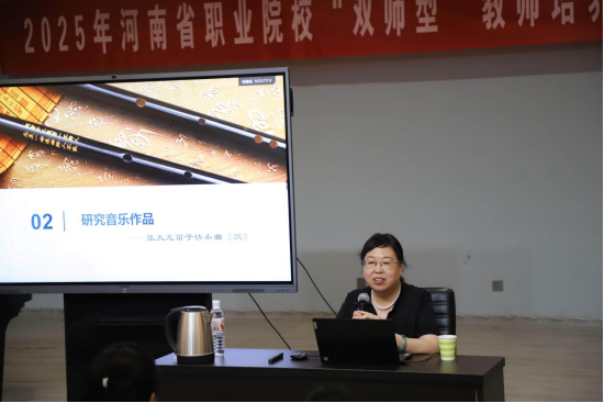 2025年8月8日下午,应我院之邀,首都师范大学音乐学院教授蔡梦为2025河南省“双师型”教师培养培训音乐表演班学员讲授《音乐的“密码”—音乐教学实施美育路径》这一专题,课程围绕领悟音乐哲学、研究音乐作品、实施音乐教育三个方面展开,为学员带来了系统且实用的音乐美育教学指导。
