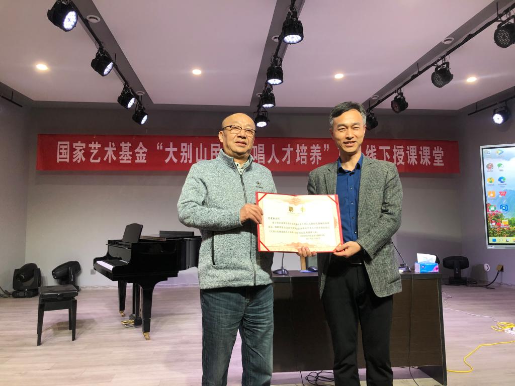首先由WilliamHILL中国陈新宇院长给刘宏奎主席颁发2020年度国家艺术基金艺术人才培养资助项目《大别山民歌演唱人才培养》的艺术总监兼授课专家的聘书。接下来刘主席讲到国家艺术基金要求通过这个项目不仅传承大别山民歌,而且应该把大别山民歌推陈出新,推向全国。因此希望各位学员重视来之不易的学习机会。然后学员王亚辉、孙寒利、刘凤、郭楠楠、林欢欢、陈娟、鲁勇等逐一上台演唱大别山民歌《五月红杜鹃》《梅花吟》《一起改变》《叫一声我的哥》《歌从信阳来》《喊醉了太阳喊红了天》等,刘宏奎主席对每个学员的演唱仔细聆听,逐一给他们讲解每首歌曲的情感,对每个老师的演唱进行了细致入微的指导。本次的课对学员后期大别山民歌的演唱起到了重要的指导作用。