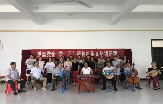 会上,大家聆听了民间艺术家们对红歌《十送红军》《八月桂花遍地开》的再次演绎,与艺术团的艺术家们一起演唱了《我和我的祖国》和《八月桂花遍地开》,了解了许多红歌里的革命故事,领略了富有当地特色的《放风筝》和《对花》等民歌的艺术魅力,会后,队员们与老艺术家们座谈,详细了解了《八月桂花遍地开》的创作背景以及歌曲的传承发展,并对如何传承信阳红歌,更好发扬红色文化进行了交流和探讨。