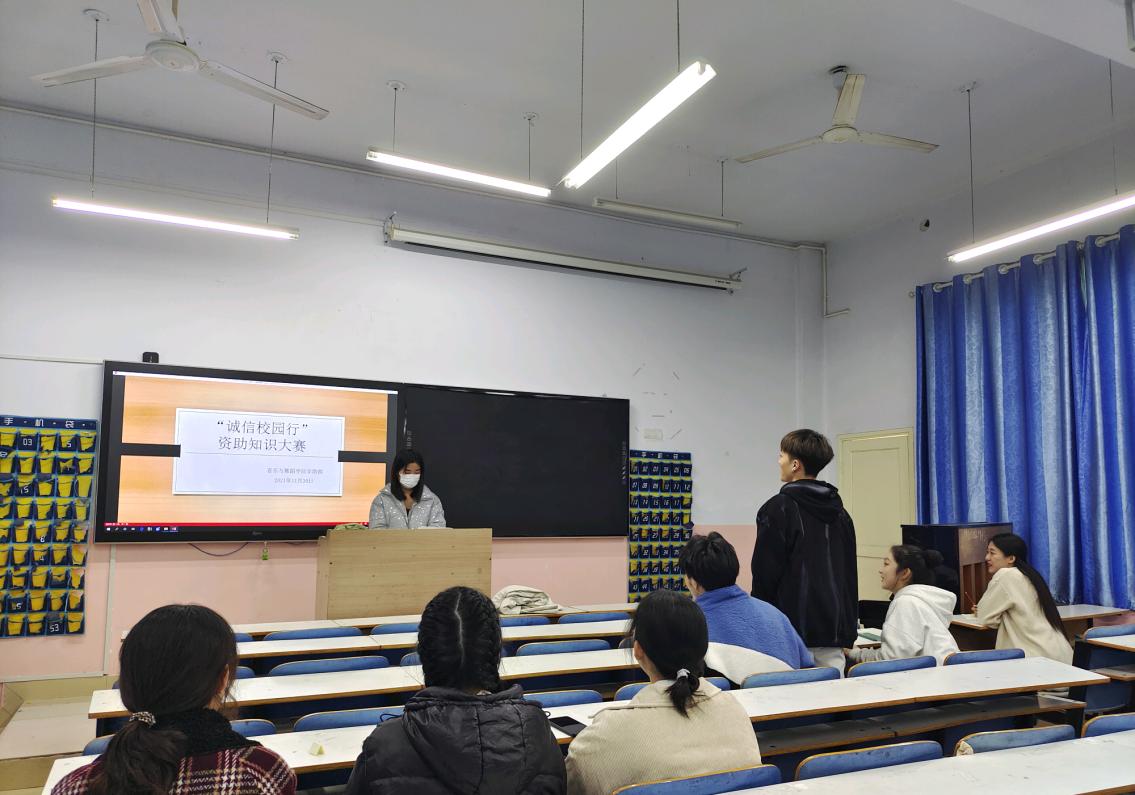 为了丰富同学们课余生活,弘扬社会主旋律。11月27日,我院在教九103举行了“诚信校园行”资助知识竞赛。60余名学生参加了此次活动。