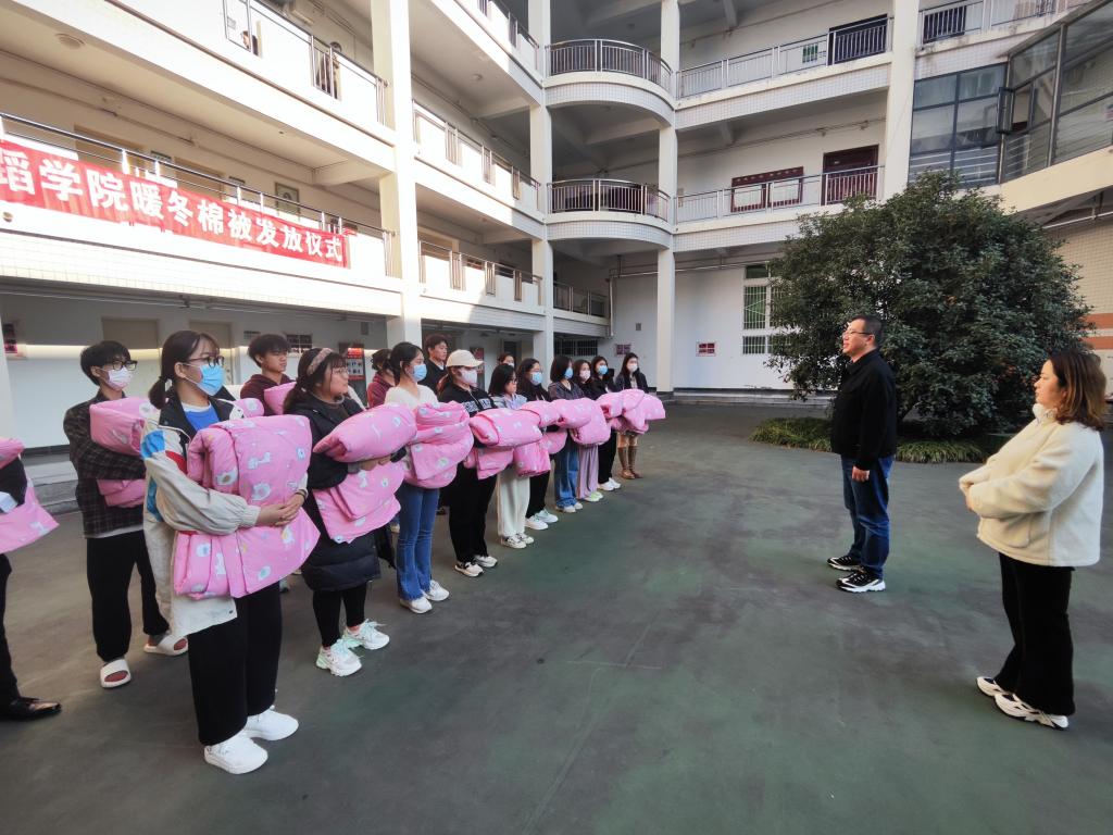 一床棉被寄托了我院领导老师的亲切关怀,承载了对困难学生的深切关爱。希望同学们能够拥有感恩之心,将爱心传递下去,温暖更多的人。