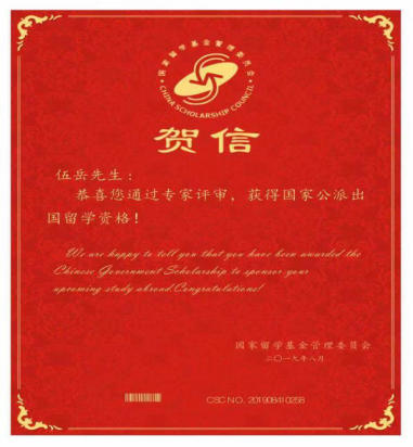 近日,经国家留学基金委评审,我院2015级音乐表演专业伍岳同学喜获2019年国家公派出国留学资格,将于今年秋天前往世界排名第二十八位的莫斯科国立格涅辛音乐学院攻读声乐演唱方向研究生交流学习。