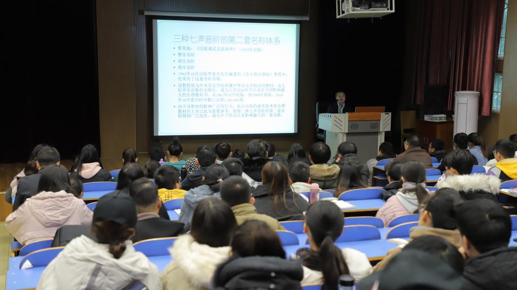 11月27日,浙江传媒学院音乐学院苗金海教授应邀在艺术楼八音讲堂为学院两百余名师生作了题为《从基本乐理教学到传统乐学研究——以音阶为起点的学术实践与思考》的精彩讲座。讲座由副院长陈新宇主持。