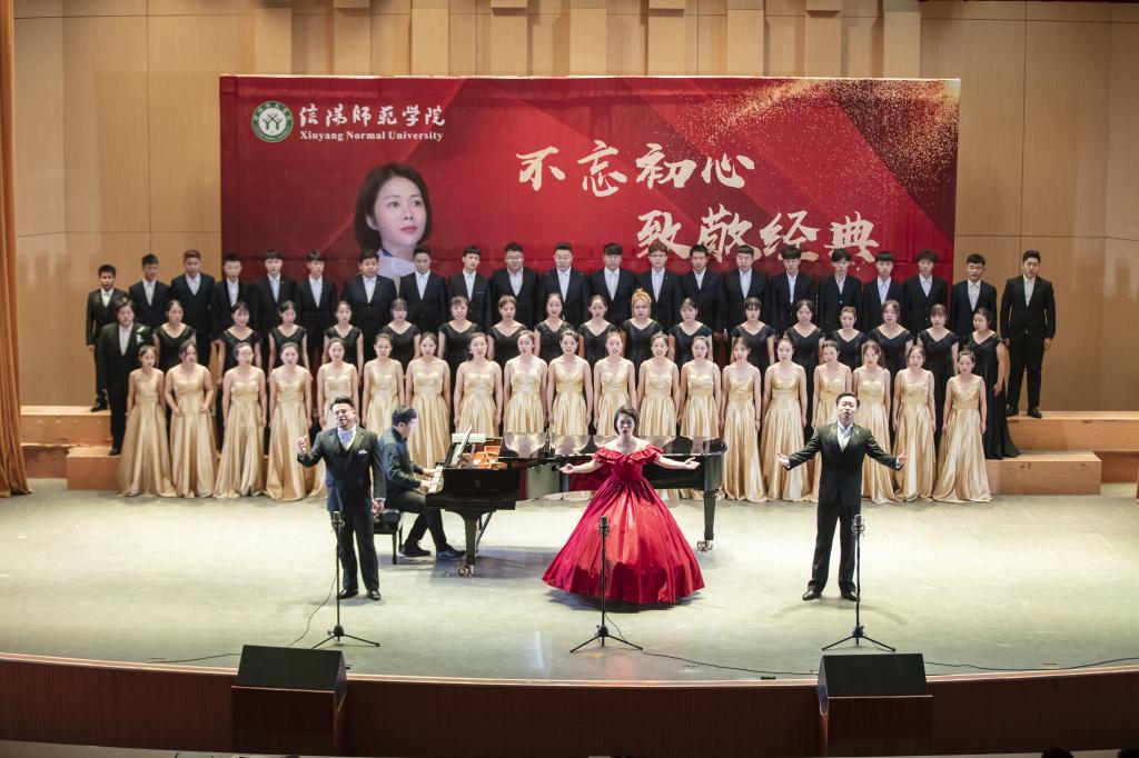12月6日晚,我院青年教师赵洋洋“不忘初心、致敬经典”独唱音乐会在艺术楼音乐厅隆重举办。信阳市人大常委会副主任熊静香,我校校长李俊,校党委副书记郜火星,副校长刘彦明、胡海华及各单位师生600余人一起欣赏音乐会。
