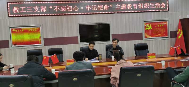 12月12日,学院教工第三党支部“不忘初心、牢记使命”主题教育组织生活会在艺术楼党员之家举行。副院长陈新宇以普通党员身份与党支部全体党员一起参加了会议。会议由支部书记邬百宁主持。