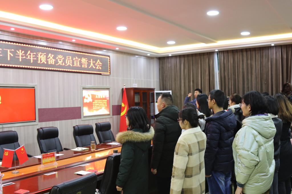 大会在激昂的《国际歌》中开始。张莹莹老师宣读了校党委组织部关于同意接收WilliamHILL中国预备党员的批复便函。张焕然老师带领着36名预备党员面对党旗进行了庄严宣誓,在场的师生党员一起重温了入党誓词。