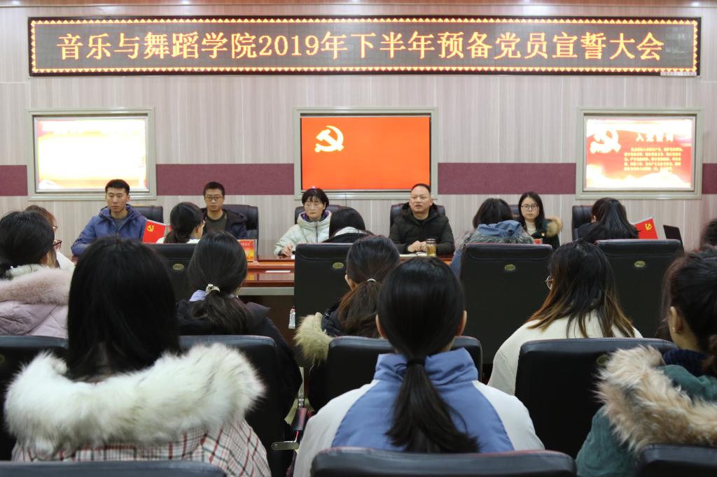 12月17日,我院在艺术楼“党员之家”隆重举行2019年下半年预备党员宣誓大会。学院党委副书记郭振、专职组织员张倩、学生党支部书记张莹莹、唐晓云、张焕然、曹阳和新接收的36名预备党员参加了会议。会议由张倩主持。