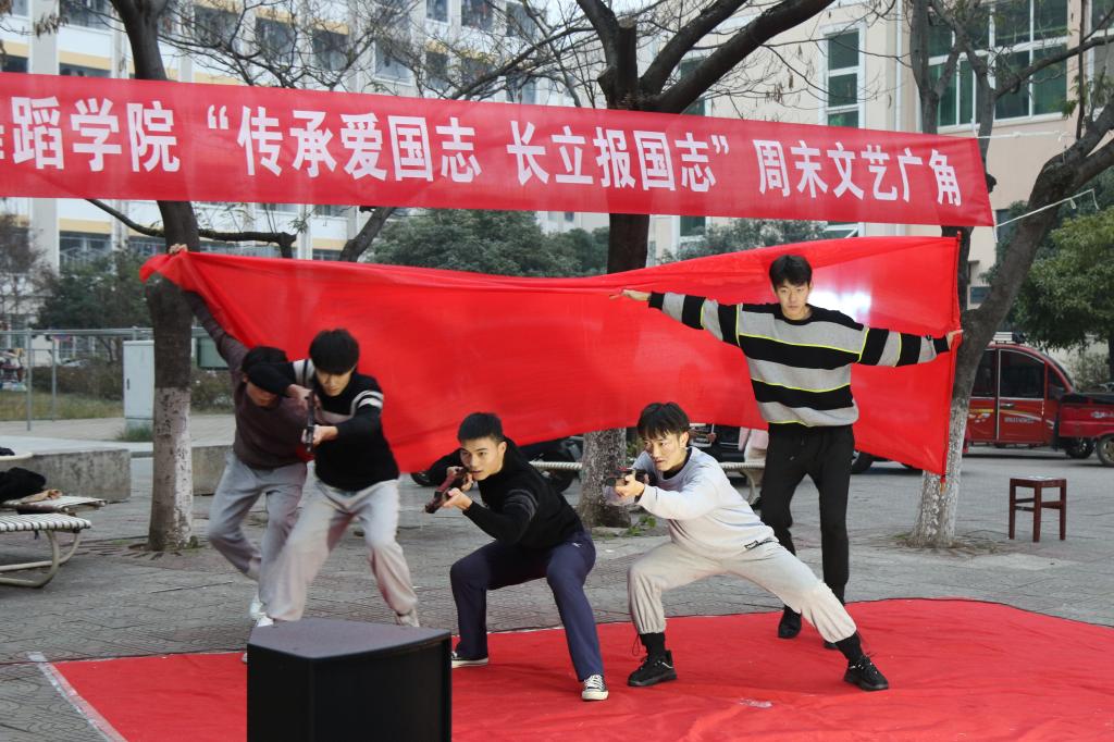 为传承和弘扬“12·9”精神,激发青年积极向上的斗志,由学院团委、学生会主办的“传承爱国志,长立报国志”主题周末文化广角在八餐心语小广场成功举办。
