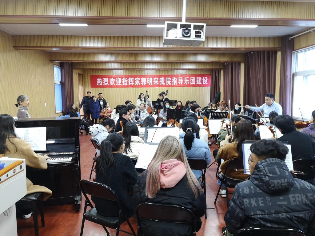 11月23日,应我院邀请,青年指挥家、山西省歌舞剧院民族乐团指挥郭明莅临我院,在老琴房楼对我院乐团排练进行了指导。