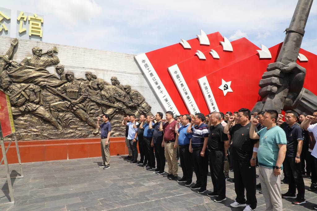 5月30日,我院教工党员赶赴红色商城,重走红军路,参观商城革命历史纪念馆。在红军路上,大家积极参加“寻找妇女排”的体验教学活动,历经两个多小时的徒步行走,大家圆满完成任务,切身感悟到了革命的艰辛与不易。在商城革命历史纪念馆前,全体党员高举右拳,庄严宣誓,在铿锵有力的誓词中再次铭刻入党初心。入馆后,大家仔细倾听每一处讲解,查看每一幅图片,深情缅怀革命先烈,追思革命烈士的丰功伟绩。