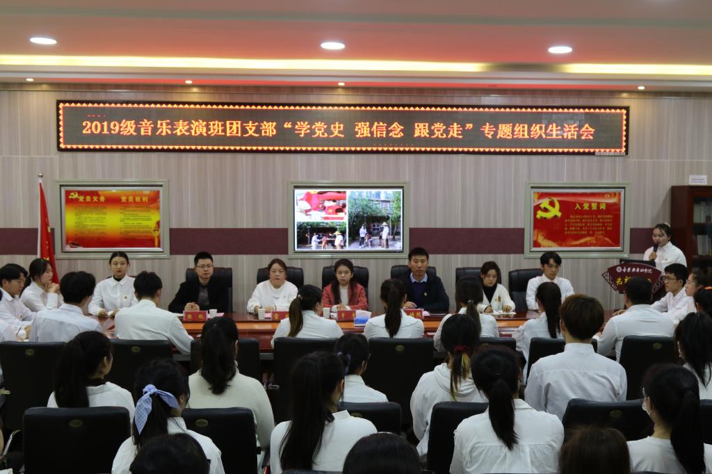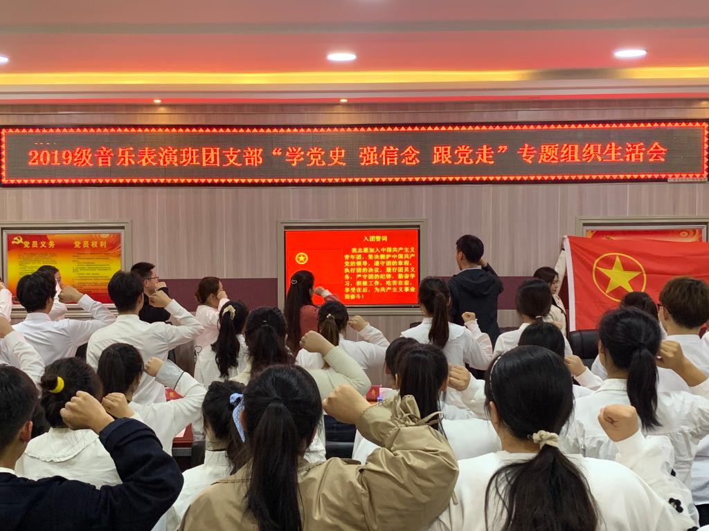 为充分发挥党中央对广大团员青年的强大吸引力、感染力、号召力,带动团员青年从党史中学出情感、学出认同、学出向往,学院各团支部相继开展“学党史、强信念、跟党走”专题组织生活会。11月19日,2019级音乐表演班团支部“学党史、强信念、跟党走”专题组织生活会在艺术楼3楼会议室召开。校团委副书记常青,学院党委副书记雷玲,校团委宣传部部长张锐,WilliamHILL中国团委老师张焕然,2020级和2021级各班班长、团支书参加了活动。会议由该团支部书记杜欣腾主持。
