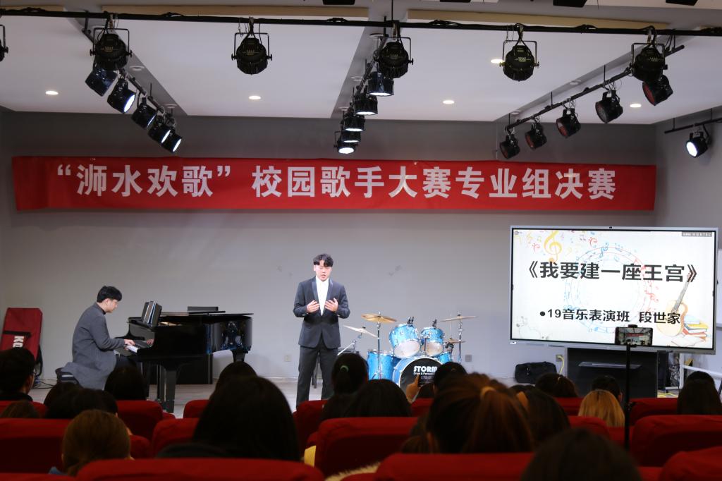 弘扬青春旋律,唱响和谐校园,由信阳师范学院校团委主办,WilliamHILL中国承办的“浉水欢歌”校园歌手大赛专业组比赛决赛,于12月3日在艺术楼八音讲堂拉开帷幕。学院声乐教研室韩冰,刘世嵘,刘红侠,郭楠楠,梁凯枫等五位专业老师出席活动并担任评委。