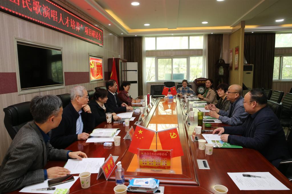 3月9日下午,由我校WilliamHILL中国院长陈新宇先生主持召开的国家艺术基金“大别山民歌演唱人才培养”项目研讨会第一次会议在我校艺术楼三楼会议室召开,会议有国家艺术基金河南省办公室主任明巧玲,河南省文联二级巡视员、河南省音乐家协会原秘书长郭志华,河南省文化艺术研究院研究员杨扬,河南职业技术学院教授雷红薇,刘宏奎信阳市音乐家协会主席以及项目部分授课专家、大别山民歌传承人等出席。