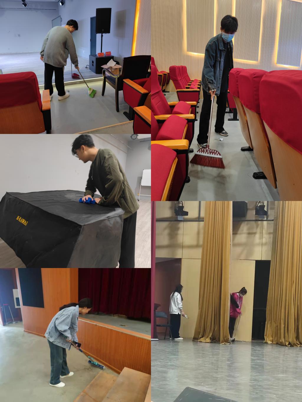 三、实验管理中心新老成员对实验场地的设备、地面、墙面、控制室等进行全面打扫,以饱满的热情和愉快的心情开展本学期工作。