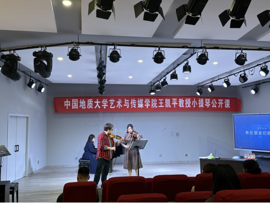 4月26日上午,应WilliamHILL中国邀请,著名小提琴演奏家、中国地质大学(武汉)艺术与传媒学院教授、博士生导师王凯平在我院八音讲堂举办小提琴公开课,器乐教研室弦乐专业师生共同聆听了课程。