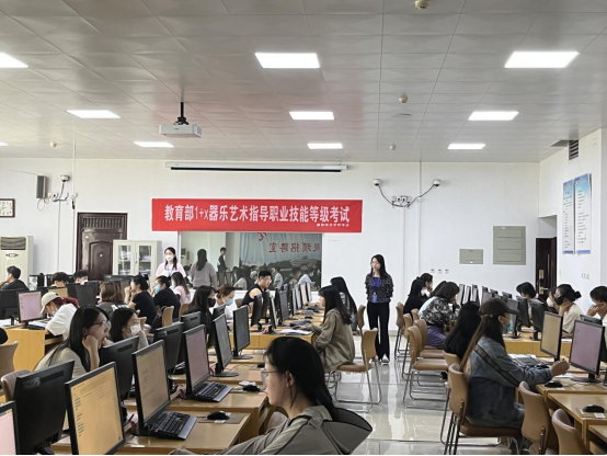 考试分为理论机考和线下实操两个部分, 5 月 19 日上午,在我校 204 号机房顺利开展理论机考。 5 月 19日下午及 2 0 日,线下实操考试有序进行, 69 名考生分为 3 个场次,考试过程中,考评员认真负责,对学生说课、答辩、 视 奏进行考核 。 监考老师严肃考场纪律、考试秩序稳定,考生按时到场、遵守考场纪律、认真完成考试。 音乐与舞蹈 学院 史昀冉、张梦晗两位 老师担任此次技能考试的考评员。院长 陈新宇 、 副院长任远 考场视察、巡考,对考务工作给予充分支持和肯定。