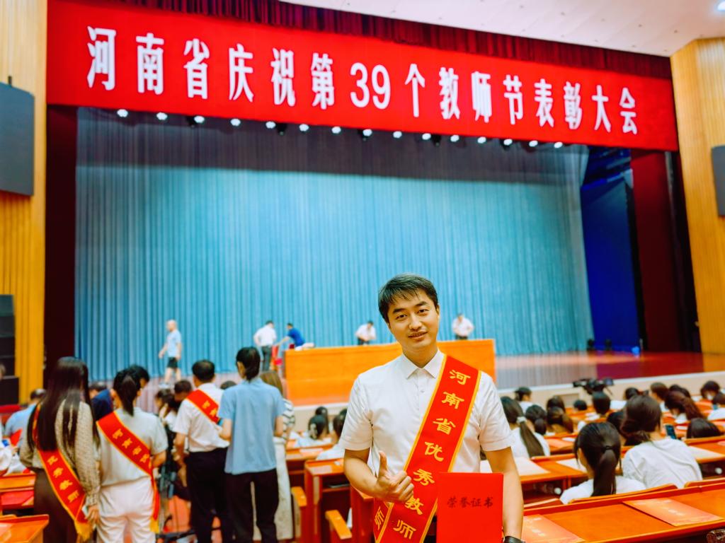 此次全省教育系统共1288名教师荣获“河南省优秀教师”称号,其中来自全省各地区高校、中小学、幼儿园等共计十位教师作为代表参加了此次表彰大会。我院周骏博士作为高校代表亲临现场接受表彰,对其是莫大的肯定与鼓励,也是对我校、我院教师队伍的高度认可。
