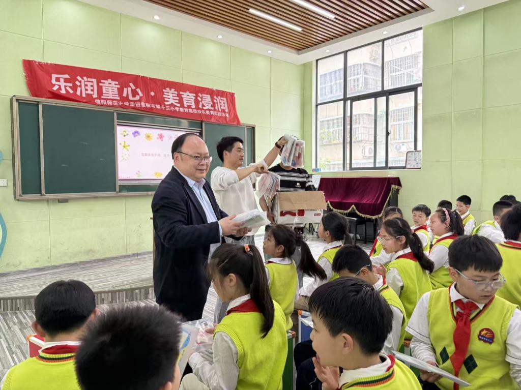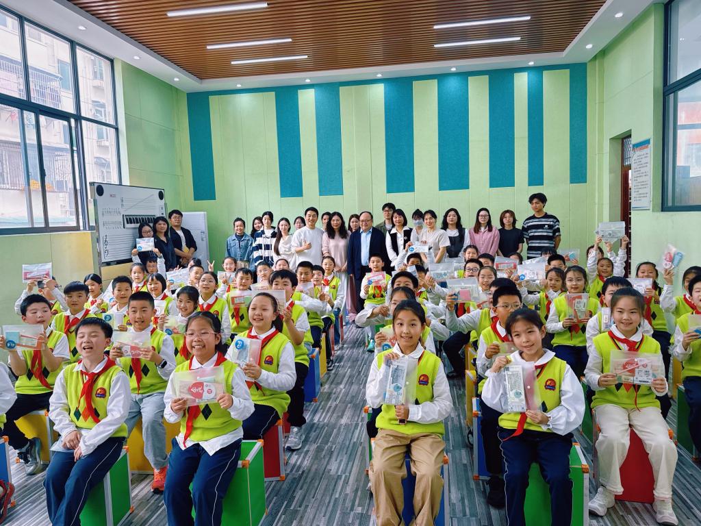 课堂结束后,活动在温暖的氛围中自然收束。双方校院领导及团队师生为孩子们发放了文具等纪念礼物,这份细微而真诚的关怀,使课堂中的情感体验由艺术延展至现实,让孩子们在喜悦中感受到被关注与被珍视,也为这节充满体验与表达的音乐课留下了一份珍贵的记忆。随后,全体师生合影留念,孩子们笑容灿烂,在镜头中定格下这一刻的纯真与美好。